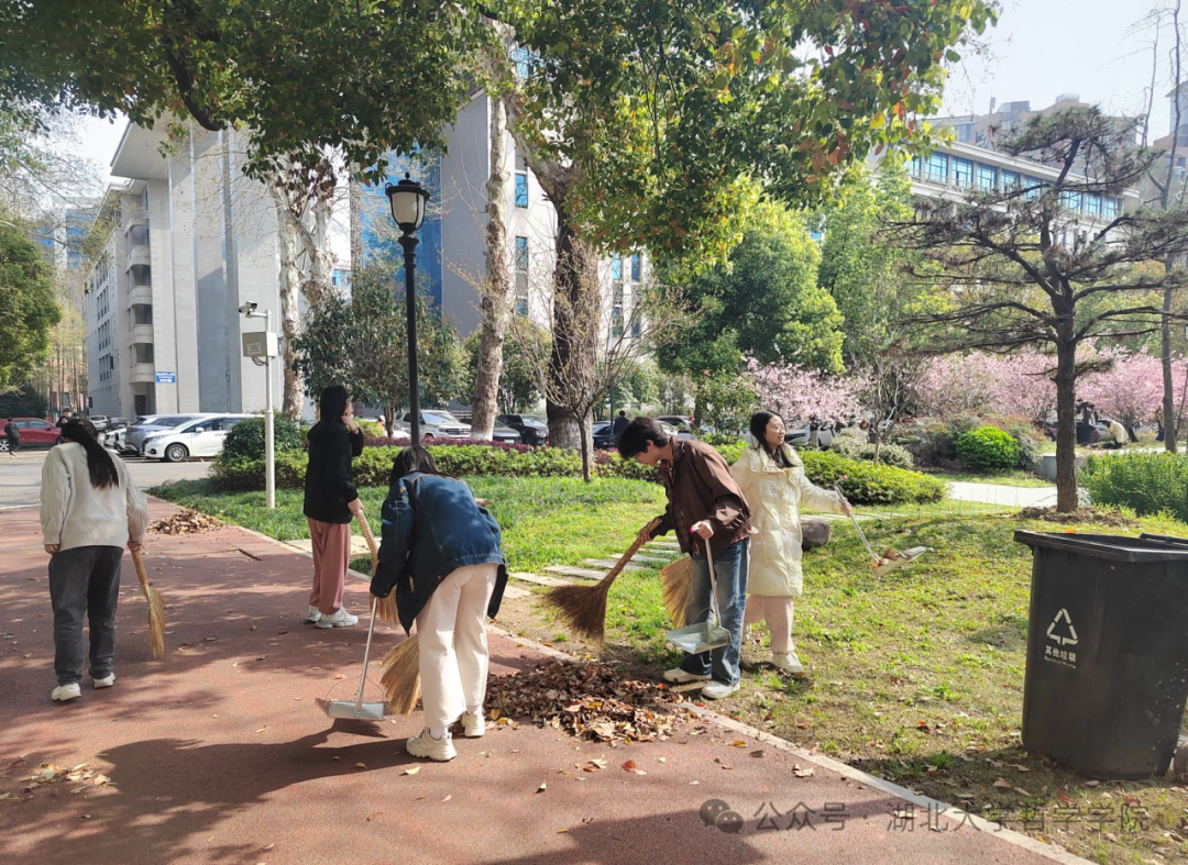随后,同学们分组行动,迅速投入到各项劳动任务中。负责清扫的同学手持扫帚,仔细清理路面上的落叶,不放过任何一个角落;负责拾捡垃圾的同学则深入草坪,用夹钳捡拾隐藏在草丛中的纸屑、烟头等杂物。经过数小时努力,习坎楼前道路整洁如新,绿化带内的垃圾也被彻底清除。大家不怕脏、不怕累,认真对待每一项细小的任务,用汗水为校园增添洁净与美好。