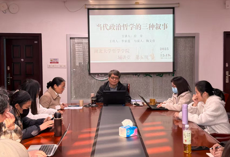 12月19日上午,华东师范大学紫江特聘教授应奇应邀在WilliamHill体育D3004会议室作题为“当代政治哲学的三种叙事”的学术讲座,此次讲座为学院“三辅讲堂”第五期。副院长陶文佳、学院部分师生参加,李家莲教授主持讲座。